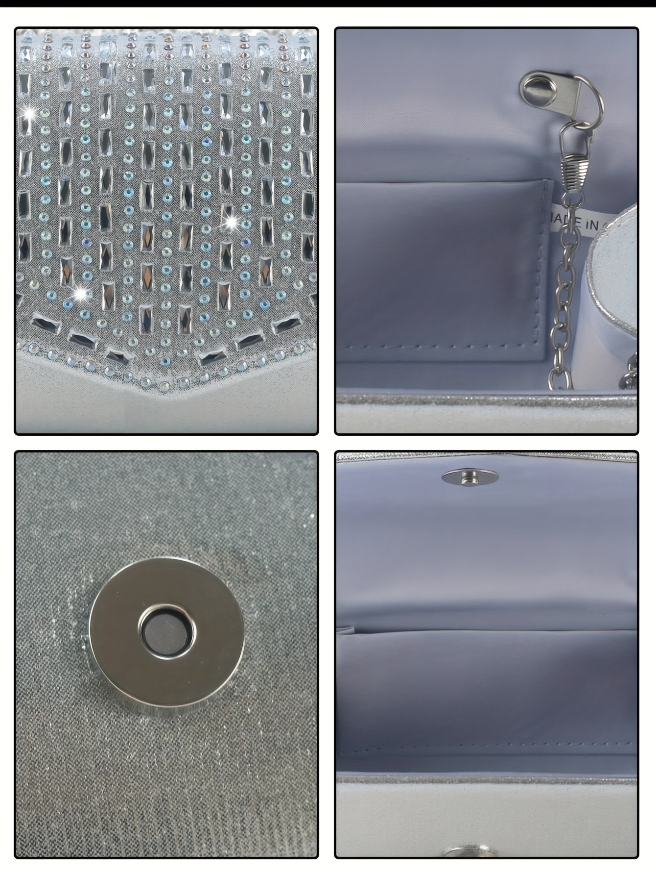 Com design refinado e brilho na medida certa, pode ser usada na mão ou com alça, garantindo praticidade sem perder a sofisticação.